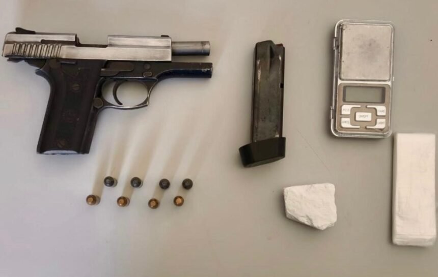 Imediatamente, a guarnição se deslocou até o local indicado. Ao se aproximar, um indivíduo percebeu a presença policial e tentou fugir, mas foi alcançado em um imóvel vizinho. Com ele, foi encontrada uma arma de fogo carregada. O suspeito confirmou que estava armado para cometer homicídios no bairro Vila América, como vingança pela morte de um colega. Diante dos fatos, os envolvidos foram apresentados ao DISEP, onde a ocorrência foi registrada. Material Apreendido: 01 pistola calibre .40, com numeração suprimida e um carregador; 08 munições intactas do mesmo calibre; 200g de substância análoga à cocaína; 01 balança e embalagens.