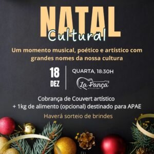 Nesta quarta-feira, 18 de dezembro, Vitória da Conquista será palco de uma noite memorável para os amantes da arte e da cultura. A classe artística local se reunirá no La Pança, a partir das 18h30, para um evento que promete unir música, celebração e solidariedade.