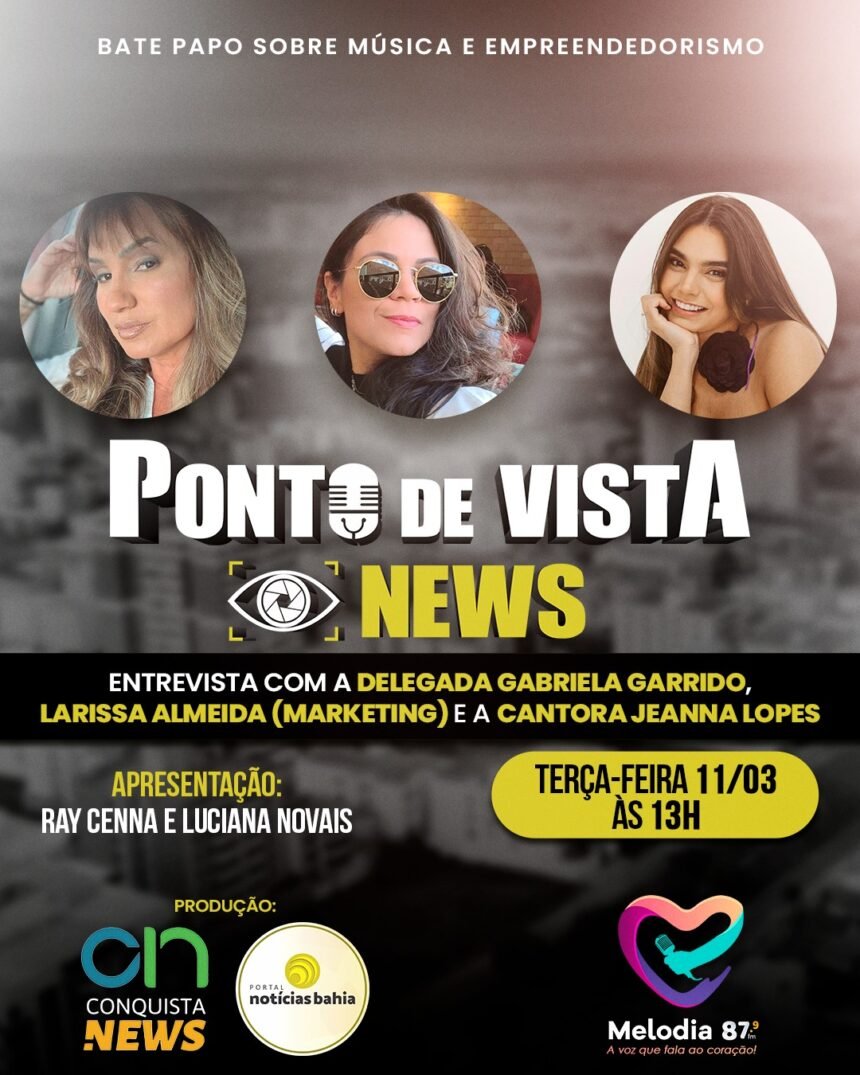 O programa Ponto de Vista News, um dos mais relevantes da região, recebe na terça-feira, 11 de fevereiro, três convidadas especiais para um bate-papo inspirador sobre cultura e inovação. A cantora Jeanna Lopes será entrevistada para divulgar o show “Marisa por Jeanna”, uma homenagem à icônica Marisa Monte, que acontecerá no Bate-Papo Pub.