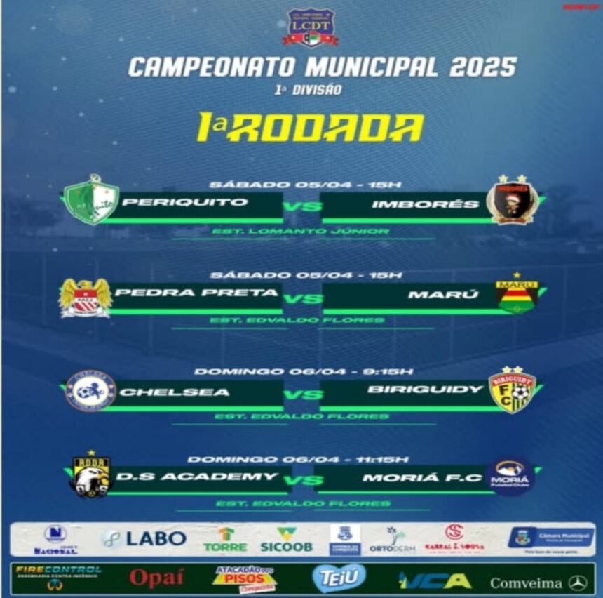 A LCDT também confirmou os jogos que abrem a segunda rodada do campeonato. No sábado (12), às 15h, o estádio Edvaldo Flores recebe o duelo entre Moicana e Bahia, enquanto Santos e Desportivo se enfrentam no mesmo horário no Lomantão. No domingo (13), também no Edvaldo Flores, Vila da Conquista enfrenta o Brasil da Limeira às 09h15, seguido por Jurema x Grêmio às 11h15.
