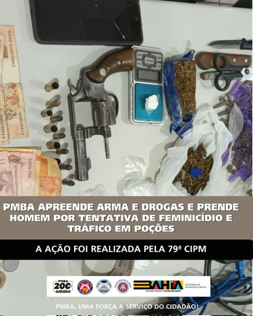 Na manhã deste domingo (20), policiais da 79ª CIPM foram acionados para atender a uma ocorrência de tentativa de feminicídio no bairro Primavera, em Poções. Conforme relato das vítimas, o autor invadiu a residência, agrediu fisicamente ambas e apontou uma arma de fogo para a cabeça das vítimas. A tentativa de disparo foi frustrada durante luta corporal, e a arma foi lançada no quintal.