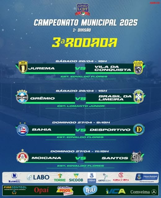 Os jogos prometem movimentar as arquibancadas e dar continuidade à disputa acirrada pelo título municipal. A LCDT reforça o convite para que torcedores acompanhem e apoiem suas equipes com respeito e espírito esportivo.
