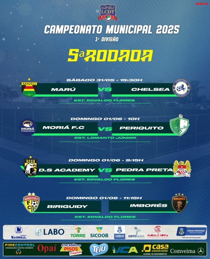 A quinta rodada do Campeonato Municipal promovido pela Liga Conquistense de Desportos Terrestres (LCDT) chega ao seu encerramento neste fim de semana, marcando mais um capítulo eletrizante da principal competição de futebol amador da região. Com jogos decisivos, a expectativa é de arquibancadas lotadas e muita vibração dos torcedores.