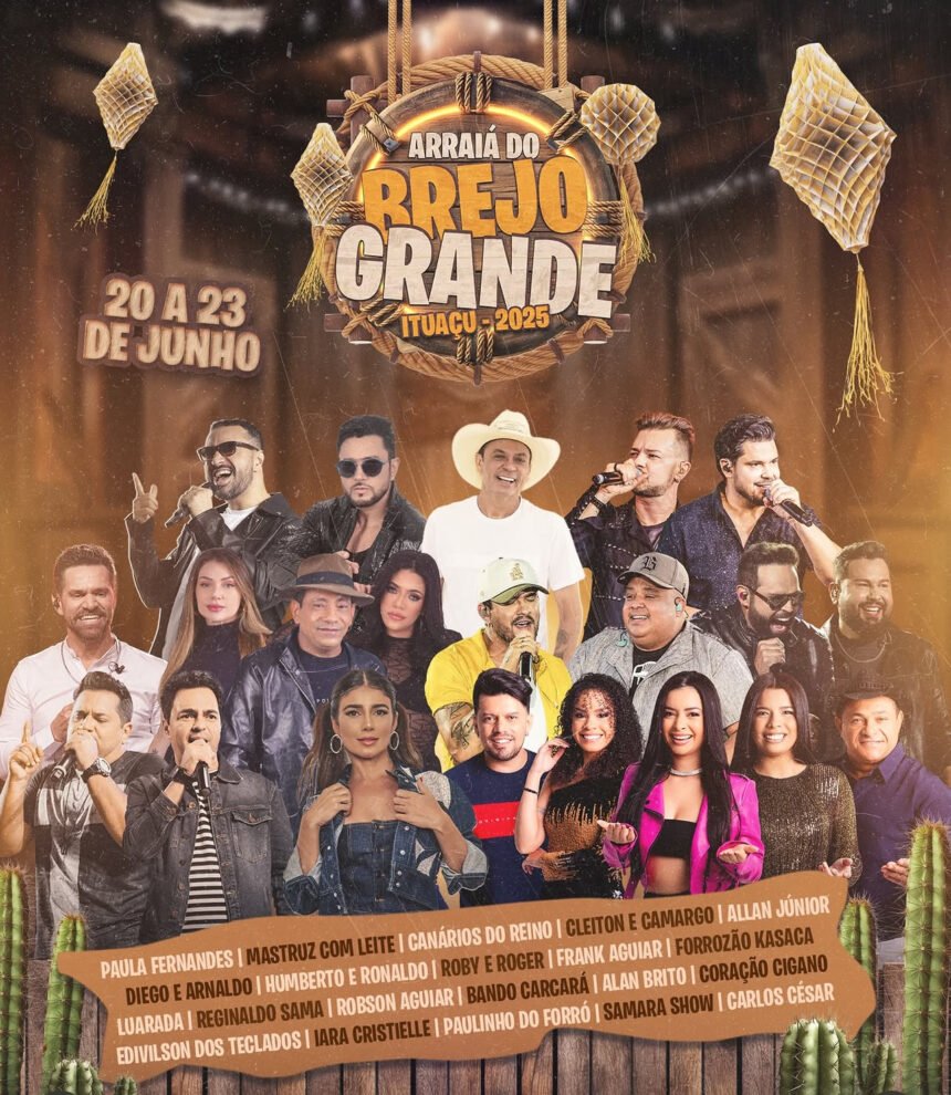 Ituaçu, na região da Chapada Diamantina, prepara-se para escrever um novo capítulo em sua história cultural com a realização do maior São João de todos os tempos! Entre os dias 20 e 23 de junho, a cidade será palco de uma verdadeira celebração nordestina, no tradicional Arraiá do Brejo Grande, que promete atrair milhares de visitantes com uma programação repleta de grandes atrações musicais, forró pé de serra, sertanejo, comidas típicas e muita animação.