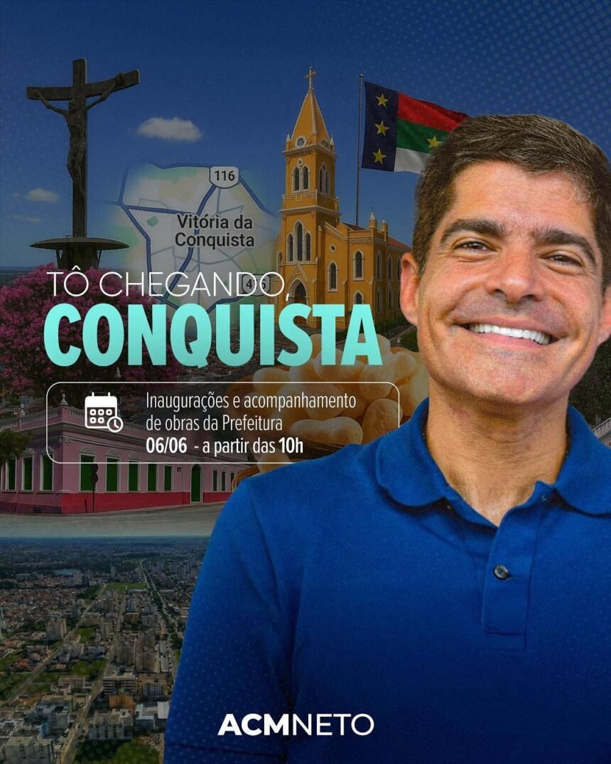 Vitória da Conquista receberá, nesta sexta-feira (6), a visita do ex-prefeito de Salvador e presidente da Fundação Índigo do União Brasil, ACM Neto. A agenda oficial inclui a inspeção de diversas obras em andamento no município, em companhia da prefeita Sheila Lemos.