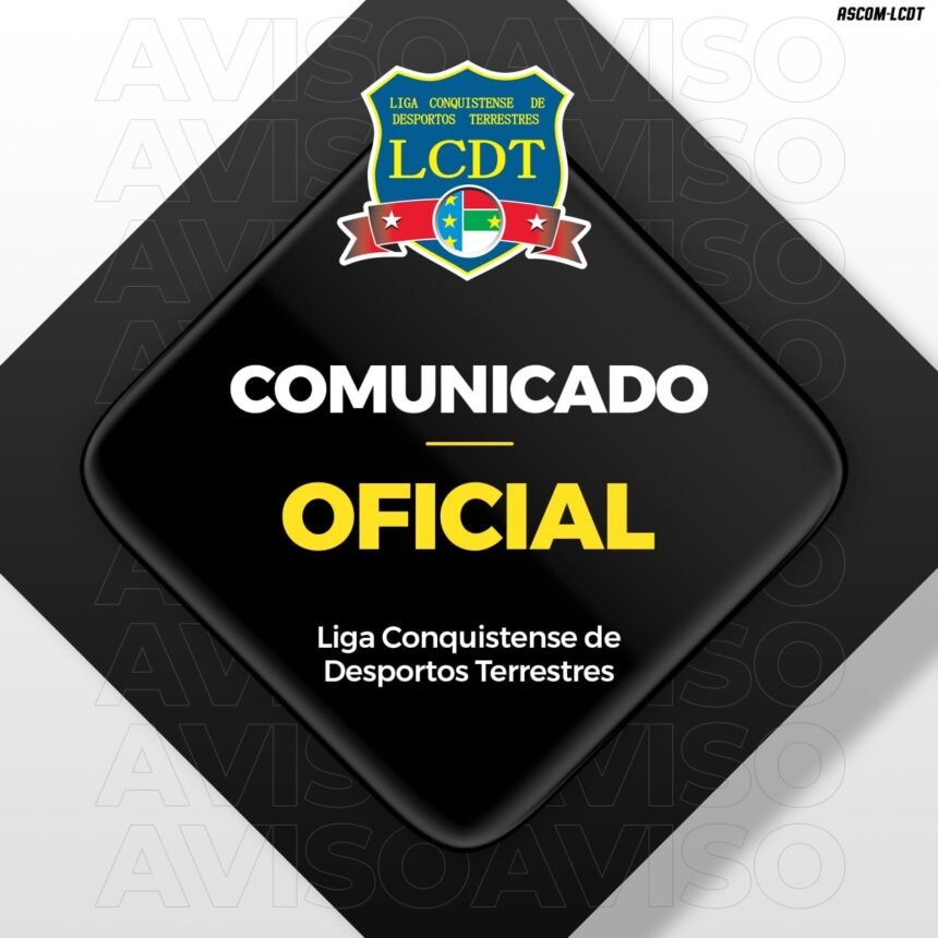 A Liga Conquistense de Desportos Terrestres LCDT, por meio de sua Comissão Disciplinar, no uso de suas atribuições legais, conforme determina o Regulamento da Competição, em seu Art. 2º, alíneas “d” e “e”, e também com base nos dispositivos do Código Brasileiro de Justiça Desportiva (CBJD), em seus Artigos 243-B, 243-C, 243-D e 243-A, §3º, vem a público comunicar decisão referente a fato ocorrido na partida válida pela 6ª rodada do Campeonato Municipal de Futebol Série A, realizada no dia 08 de junho de 2025.