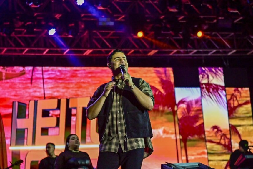 Na noite desta sexta-feira (20), o Parque de Exposições Teopompo de Almeida, em Vitória da Conquista, foi palco de mais um grande momento do Arraiá da Conquista 2025. A segunda atração da noite, o jovem cantor Heitor Costa, subiu ao palco embalado pelo sucesso “Arrasada” e levou o público ao delírio com um repertório recheado de grandes hits do arrocha.