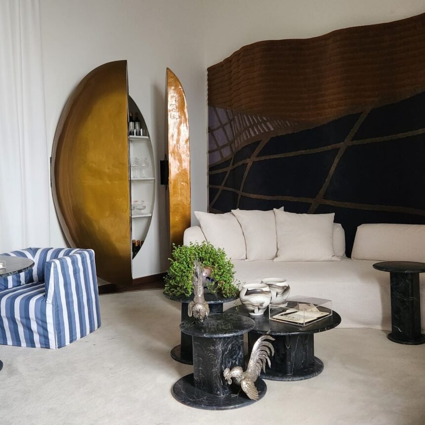 O projeto também incorpora tendências como a cenografia sutil aplicada à arquitetura de interiores, além de valorizar técnicas e materiais tradicionais. A tapeçaria vertical, assinada por Dana Weege, é um exemplo de como o ambiente resgata o uso histórico do tapete como peça de parede, elevando o objeto ao status de obra de arte. O espaço ainda conta com peças assinadas por designers como Fernando Mendes e Vinicius Siega, além do sofá Amsterdã, da Green House.