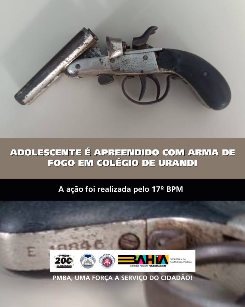 Por volta das 13h32 desta segunda-feira (18), uma guarnição do 17º BPM foi acionada pela diretora de um colégio em Urandi, informando que um aluno estaria portando uma arma de fogo nas dependências da escola.