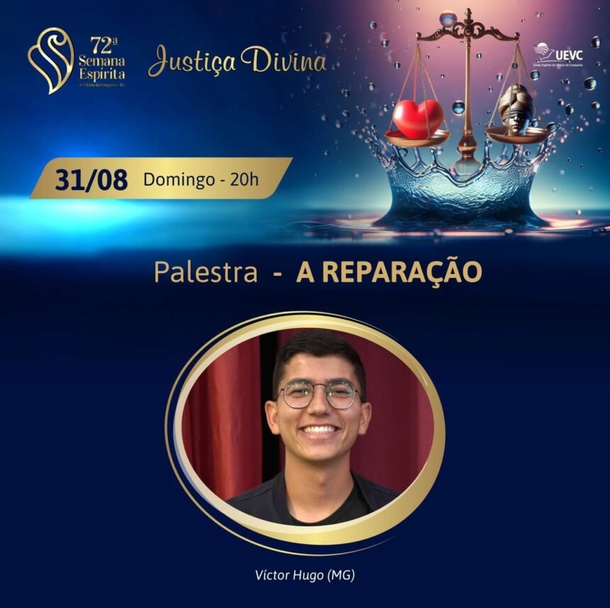 A 72ª Semana Espírita de Vitória da Conquista prossegue neste domingo, 31 de agosto, com a terceira palestra da programação. O conferencista Víctor Hugo será o responsável por conduzir o encontro, às 20h, com o tema “A Reparação”. A expectativa é de que o auditório volte a ficar lotado, já que o evento vem registrando grande adesão da comunidade desde o primeiro dia.