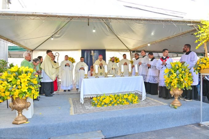 A missa festiva, presidida pelo arcebispo metropolitano Dom Vitor Menezes, aconteceu em frente à paróquia que leva o nome da santa e que, atualmente, passa por obras de reconstrução. O novo templo será elevado à categoria de santuário, com capacidade para acolher cerca de 600 pessoas.