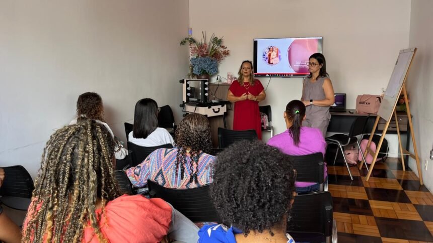 A oficina é realizada nos dias 9 e 10, com turmas organizadas para atender até 15 mulheres por dia, garantindo um acompanhamento mais próximo e um ambiente propício à troca de experiências. A programação é dividida em dois momentos complementares: no turno da manhã, as participantes recebem formação teórica em empreendedorismo e vendas; à tarde, participam de atividades práticas de automaquiagem, ampliando conhecimentos que podem ser aplicados tanto no uso pessoal quanto como oportunidade de negócio.
