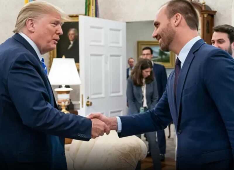 O ex-deputado federal Eduardo Bolsonaro (PL-SP) informou que estará presente no dia 10 de fevereiro em um evento internacional que contará com a participação do presidente da Argentina, Javier Milei. O encontro será realizado no Mar-A-Lago Club, resort de propriedade do presidente dos Estados Unidos, Donald Trump, localizado na Flórida.