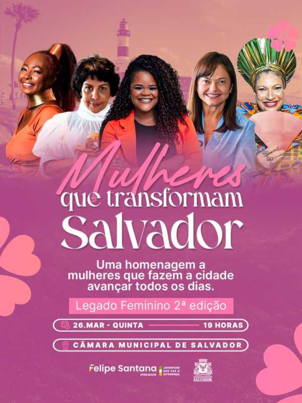 Com o tema “Mulheres que transformam Salvador”, a iniciativa reforça a importância da atuação feminina em diferentes áreas, como saúde, educação, empreendedorismo, assistência social e gestão pública. Segundo o parlamentar, o evento surge como um espaço de visibilidade, reconhecimento e incentivo, destacando trajetórias inspiradoras que impactam positivamente a vida da população.