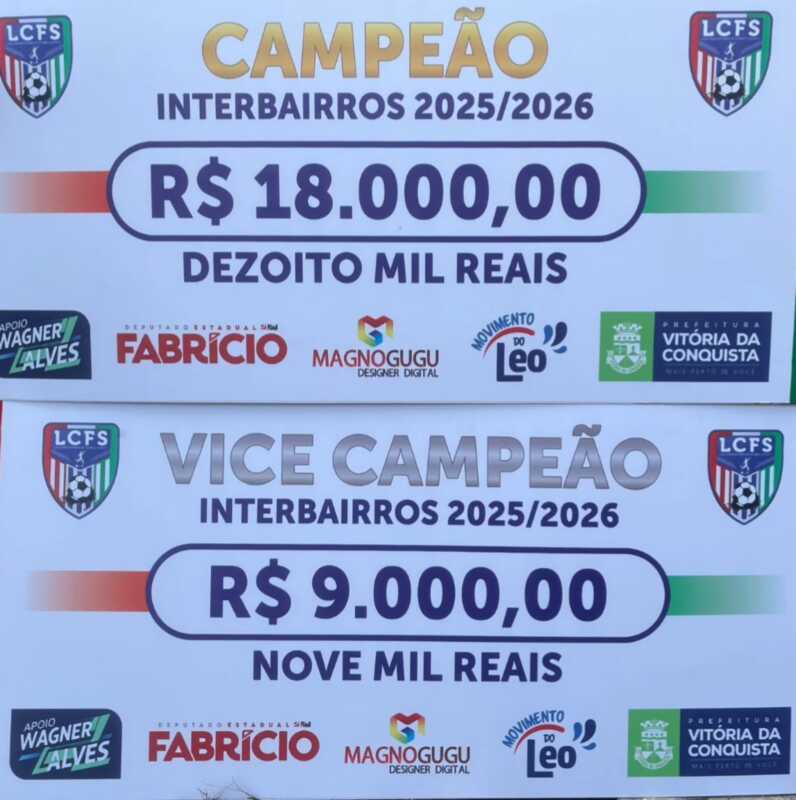 Além da honra de se consagrar campeão interbairros, a disputa envolve uma premiação significativa. A equipe vencedora levará para casa o troféu, medalhas e a quantia de R$ 18 mil. Já o vice-campeão também será premiado com troféu, medalhas e R$ 9 mil.