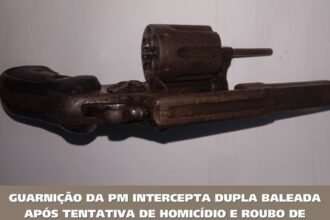A guarnição da PM intercepta dupla baleada após tentativa de homicídio e roubo de motocicleta em Ipiaú.