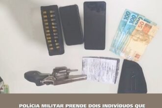 GUARNIÇÃO DA 80ª CIPM PRENDE DOIS INDIVÍDUOS QUE PORTAVAM ARMA DE FOGO E MUNIÇÕES EM RIBEIRÃO DO LARGO