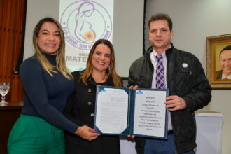 Durante a solenidade de fortalecimento do cuidado materno realizada, no auditório da…