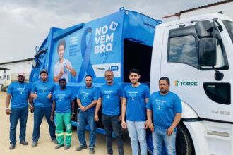 O Caminhão da coleta ganha nova cor e reforça campanha do Novembro Azul em Vitória da Conquista.
