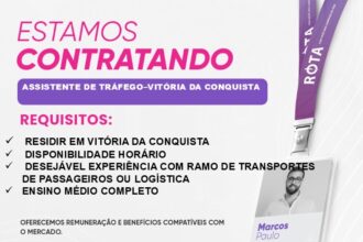 A Rota Transporte anuncia novas oportunidades de emprego em Vitória da Conquista.