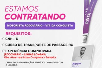 A Viação Rota abre vagas para motoristas com CNH D em Vitória da Conquista.